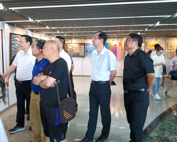 7月2日下午,为庆祝中国共产党成立100周年,以“百年百幅”为题,由合肥学院、安徽大学共同举办的师生书画摄影作品联展在安徽大学磬苑校区文典阁开展。安徽大学党委书记蔡敬民出席活动并致辞,我校党委委员、宣传统战部部长贾峰,工会主席崔国庆参加开幕式并参观展览。