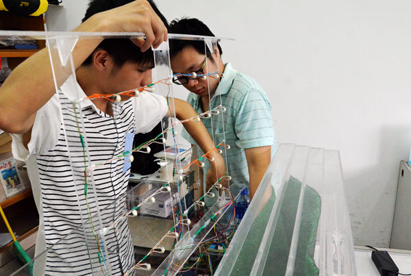 不断地尝试不断地改进,与其说是挫折,实验人更乐意把它当成积累经验的垫脚石。一个实验除了最后的成功,过程的积累更是一笔难得的财富。“程序猿”自己都不知道调试过多少次才成功,各种“奇葩”问题层出不穷,但他们从未想过放弃,一直坚持在做,“每次想到智能温室做出来的样子,我就又了动力,我坚信我们一定能把它做好。”许古午自信地说道。