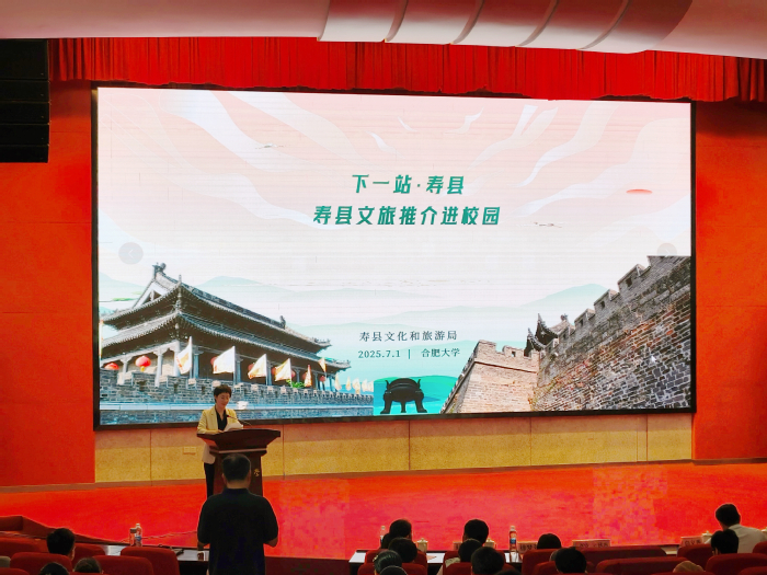 7月1日下午,“下一站·寿县”文旅推介进校园活动在我校图书馆报告厅A厅举行。党委委员、副校长白义香,寿县人民政府副县长王素苗,寿县县委宣传部、文化和旅游局等相关部门领导出席。活动吸引了数百名师生参与。