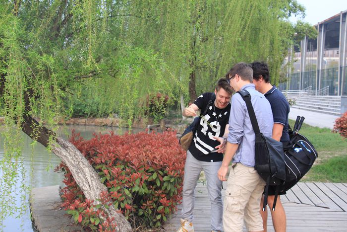 如果说汉宣社姑娘们的寻春之旅,源自于在校园寻找古仁人字里行间的春之美,那来自大洋海岸的留学生又为何穿梭于校园的杨柳荫间、桃花影下,久久不愿离去呢?可能是这园中初春的可爱也触动了他们内心深处的丝丝情愫,他们相伴而过,指点着湖边垂下的杨柳,或许脑中难以浮现“碧玉妆成一树高,万条垂下绿丝绦”这样的诗句,但若干年后,回忆起异国他乡的留学之旅,或许这一幅画面会成为他们对第二故乡——合肥永恒的记忆。